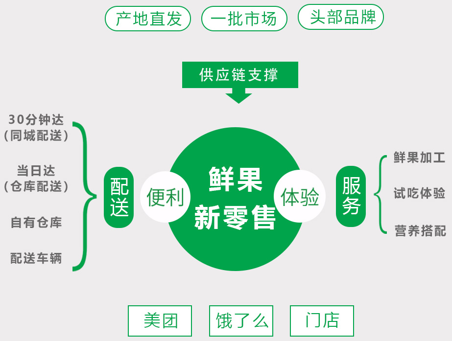 用新鲜安全性价比较高的健康果品,赏心悦目的陈列展示,使消费者对购物过程便利性与舒适性的要求能够得到更好满足,从而增加用户粘性,从而达到线下实体店给顾客提供果品和服务时所具备的可视性、可感性、可用性等直观属性